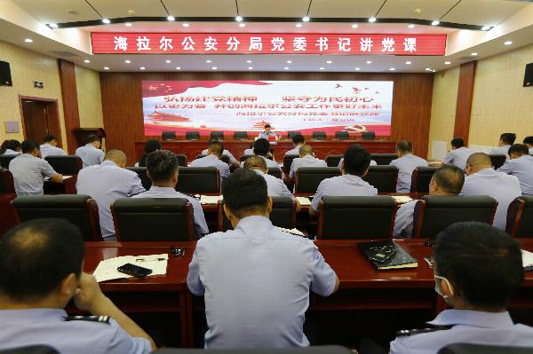 海拉尔公安分局局长滕立山以“弘扬建党精神,坚守为民初心,以史为鉴,开创海拉尔公安工作更好未来”为主题,为全局民警、辅警讲授了一堂专题党课。