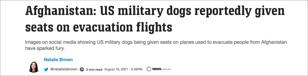 https://www.news.com.au/world/middle-east/afghanistan-us-military-dogs-reportedly-given-seats-on-evacuation-flights/news-story/3366a195b919bc463276157034f6d6fb
