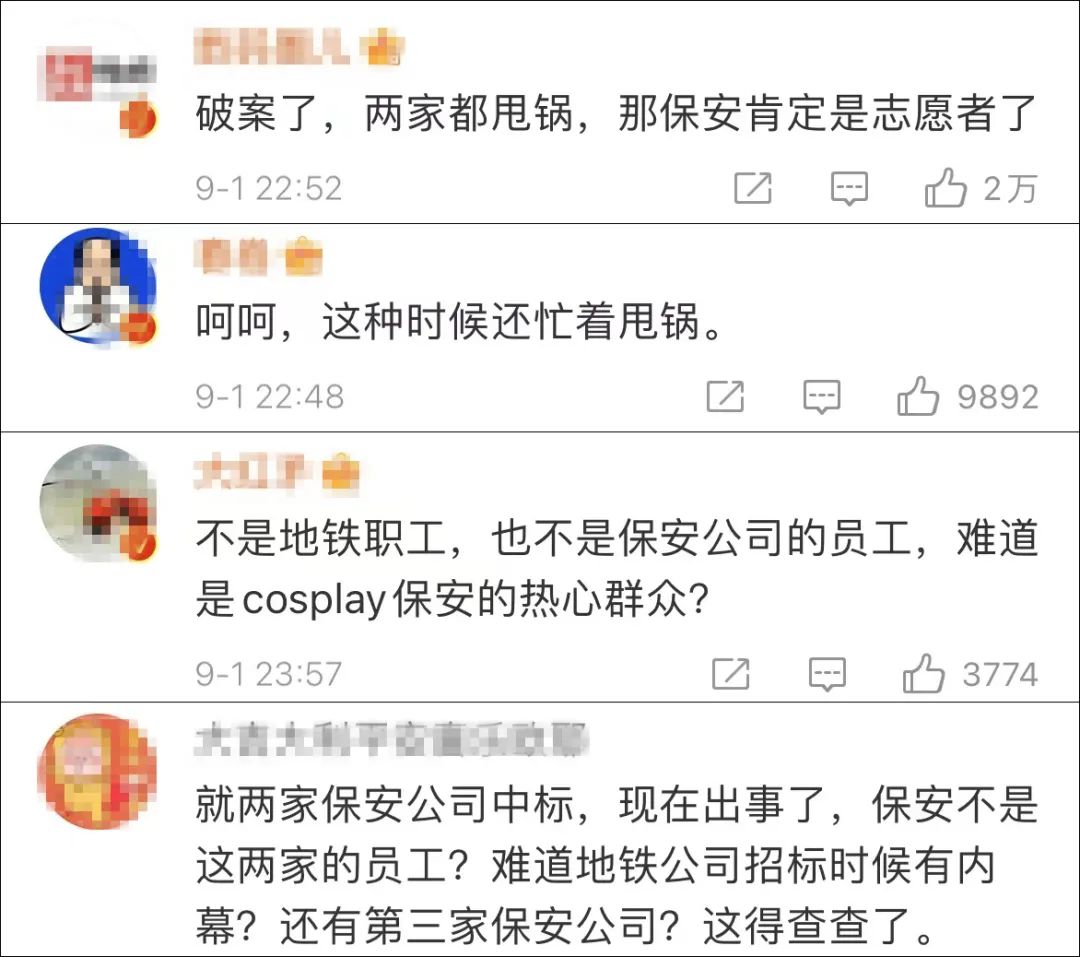 如今两家公司各执一词,让一众网友大呼“看不懂”:这就奇了怪了,一条地铁线路总共就两家安保公司负责。现在谁都不认,那涉事保安到底是哪家公司的呢?