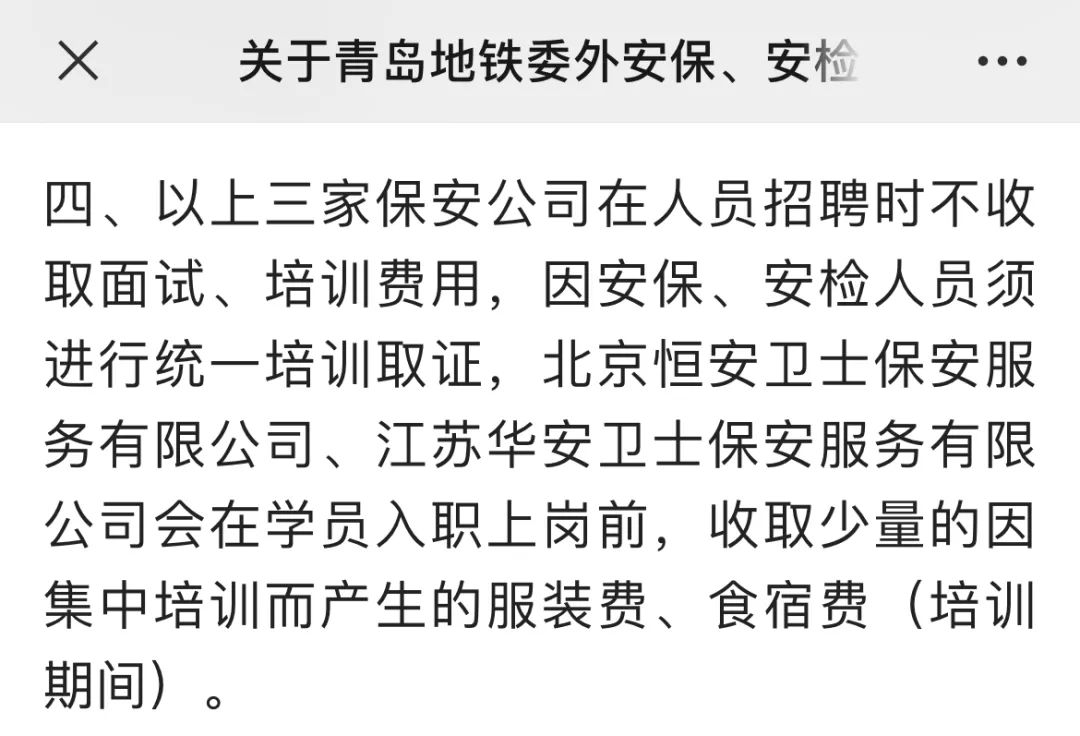 而在一则《情况说明》中曾提到,江苏华安卫士在人员招聘时不收取面试、培训费用,但因安保、安检人员须进行统一培训取证,公司会在学员入职上岗前,收取少量的因集中培训而产生的服装费、食宿费。