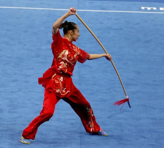 最后的枪术项目是赖晓晓的强项,只见她:挑枪直若离弦之箭,拨枪摆似银蛇翻滚,整套动作行云流水,以9.810分再夺第一。综合三项成绩,赖晓晓独占鳌头,终圆自己的全运冠军梦。