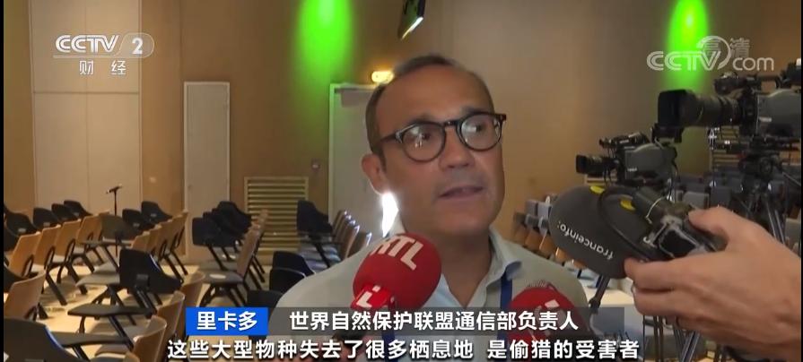 世界自然保护联盟通信部负责人 里卡多:在濒危物种中还有犀牛、白犀牛、黑犀牛,这些大型物种失去了很多栖息地,是偷猎的受害者。有一个物种在几年前还没有受到威胁——长颈鹿,可能会悄无声息地灭绝。
