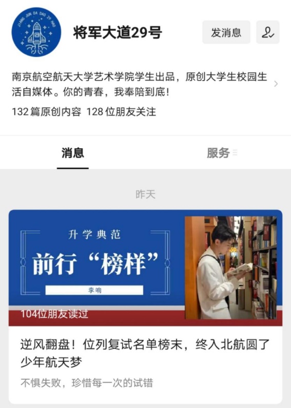 两年时间里,团队共采访了百余位本硕博毕业生,在“南京航空航天大学就业”、“将军大道29号”公众号共计发布推送37篇,阅读量累计4w+,推送在持续更新中,团队也被学校推荐参加“全国大学生百强暑假实践团队”的评选。