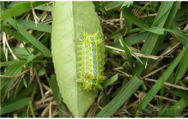 这只浑身带刺的家伙一看就不好惹,它就是我们常说的“洋辣子”,学名丽绿刺蛾。该虫是重要的园林害虫之一。在幼虫期,它会大量取食多种植物的叶片,成长到高龄后,最终结茧羽化,变成飞蛾。值得关注的是,它全身都有密集的毒刺,如稍有不慎与其接触,便会痒痛难忍,大家在野外看见了要离它们远一点。月季叶蜂