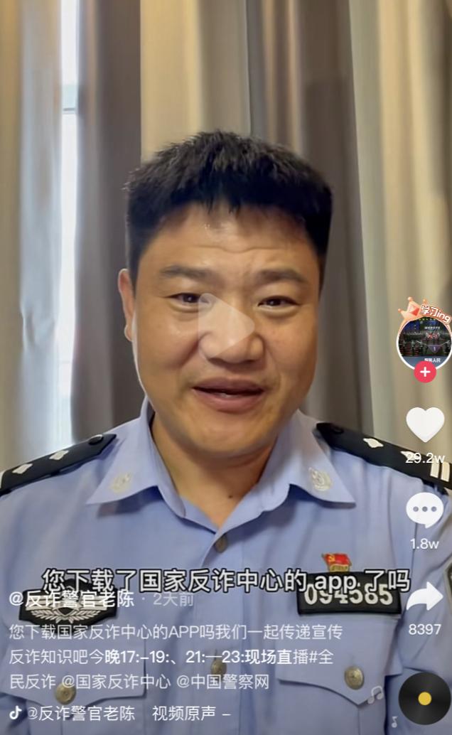 三天连麦50多名主播,在短视频平台上宣传反诈知识。近日河北反诈民警陈国平一跃成为“网红民警”,在他的宣传带动下,国家反诈中心APP登顶下载榜,成为当下最火的手机软件。