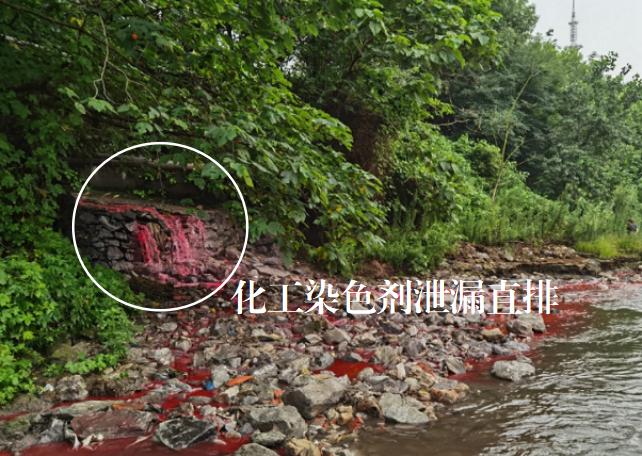 △图4 黄麦岭公司化工染色剂发生泄漏通过雨水口直排,污染大雁河,呈明显红色,经监测污水色度(稀释倍数)高达128倍襄阳市南漳龙蟒磷制品有限责任公司磷石膏库内磷石膏堆填不符合规范,雨天时磷石膏被冲刷直排外环境;该公司部分磷石膏被转移到襄阳龙蟒钛业有限公司渣库堆存,钛业有限公司渣库未配套建设渗滤液处理设施,场内废水通过雨水管网直排外环境,监测显示,废水中总磷、氨氮、化学需氧量和氟化物浓度分别为2.56毫克/升、4.45毫克/升、224毫克/升和5.51毫克/升,分别超地表水Ⅲ类标准11.8倍、3.45倍、10.2倍和4.51倍。