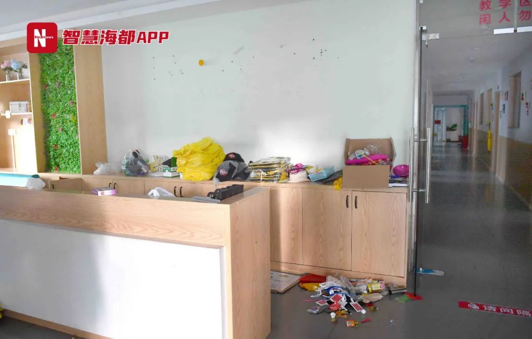 在大厦六楼,地面和桌面上散落着一堆书本及杂物。教室里课桌椅仍摆放如常,办公室似有人使用,厨房桌面上摆放着成品菜式,还有沏着茶水的水壶。海都君在厨房里等待了片刻,并没有人出现,便自行离开。海都君打算到大厦物业处了解该机构的情况。但大厦一楼的几位商铺主告诉海都君,大厦物业已经撤出,目前没有物业。随后海都君按照家长提供的联系方式拨打了蔡校长电话,但一直无人接听。
