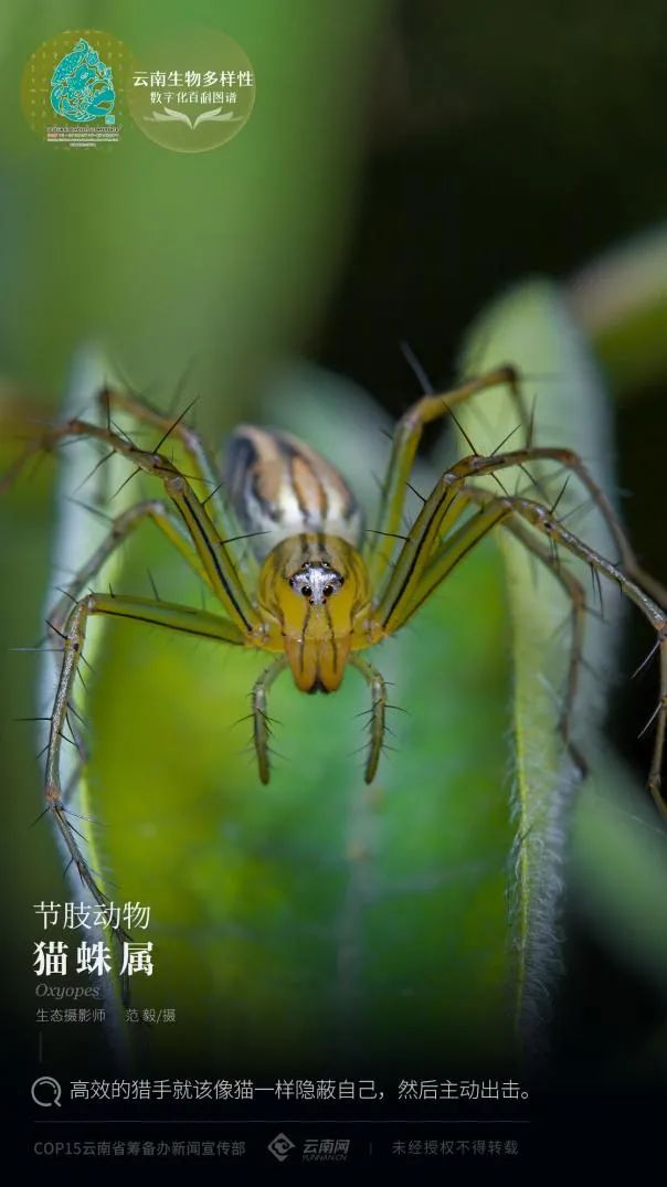 原标题:《【云南生物多样性数字化百科图谱】猫蛛属:高效的猎手就该像猫一样隐蔽自己,然后主动出击》