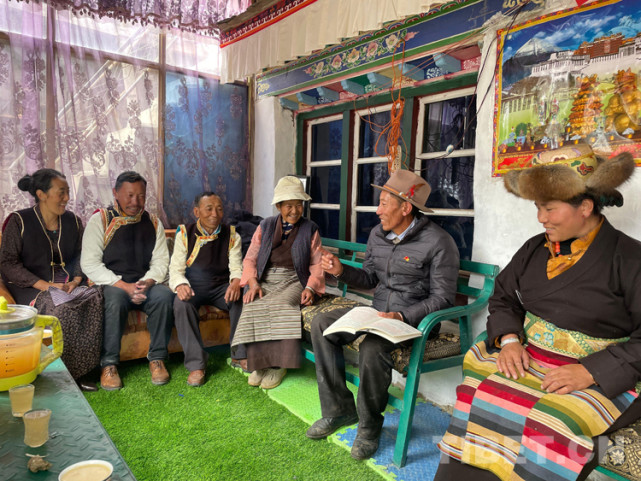 图为索朗顿珠进农户宣讲党史知识