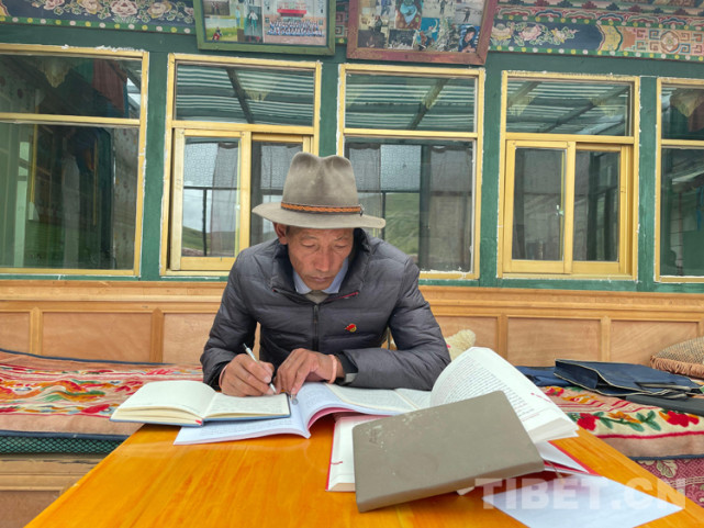 图为索朗顿珠认真做宣讲备课