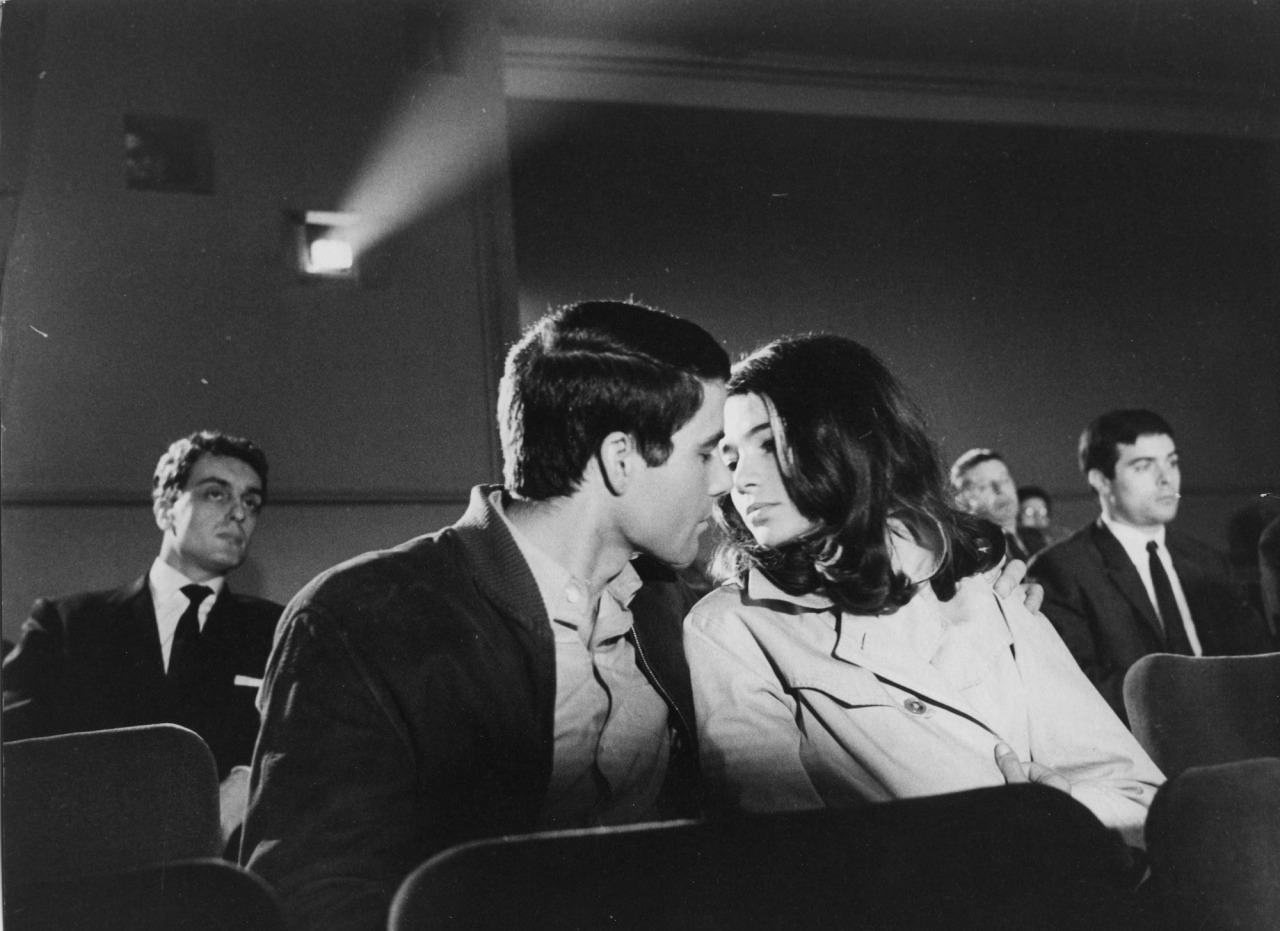 卡斯特诺沃(左)与凯瑟琳·德纳芙在《瑟堡的雨伞》拍摄现场。