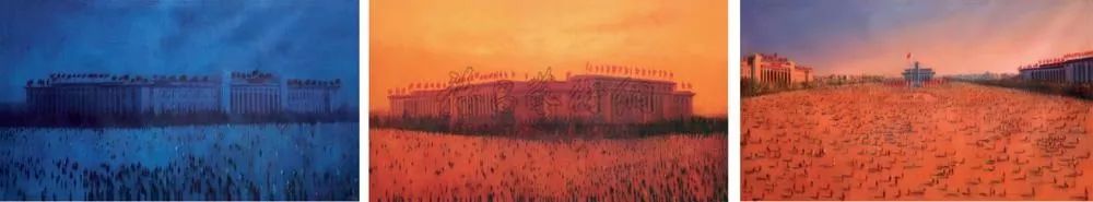 尹朝阳《天安门广场组画》布面油画 385×285cm×3