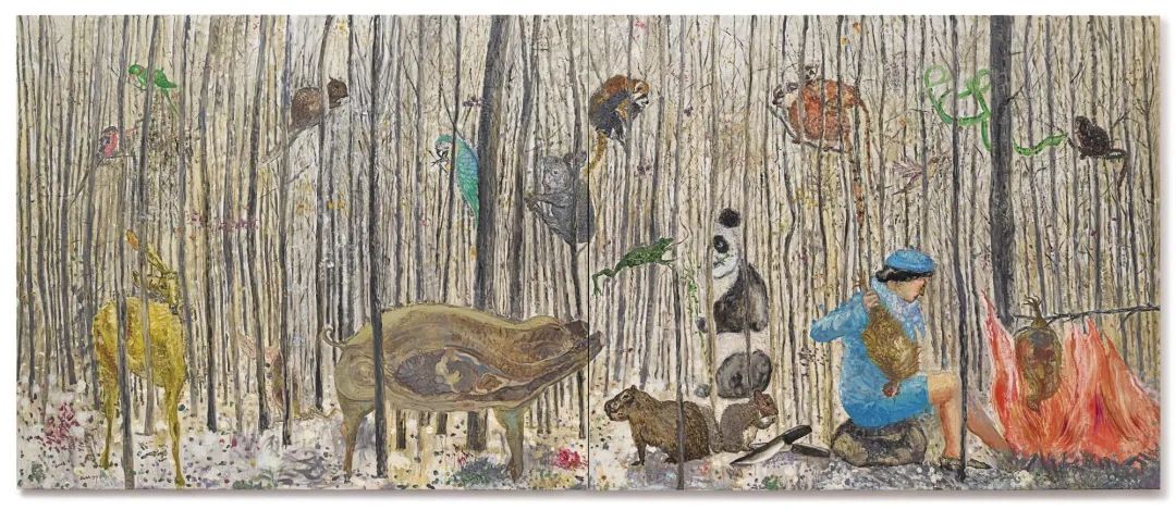 TOP6谢南星《无题(有声音的图像II)》布面油画 220×380cm×3 2001-2002年作
