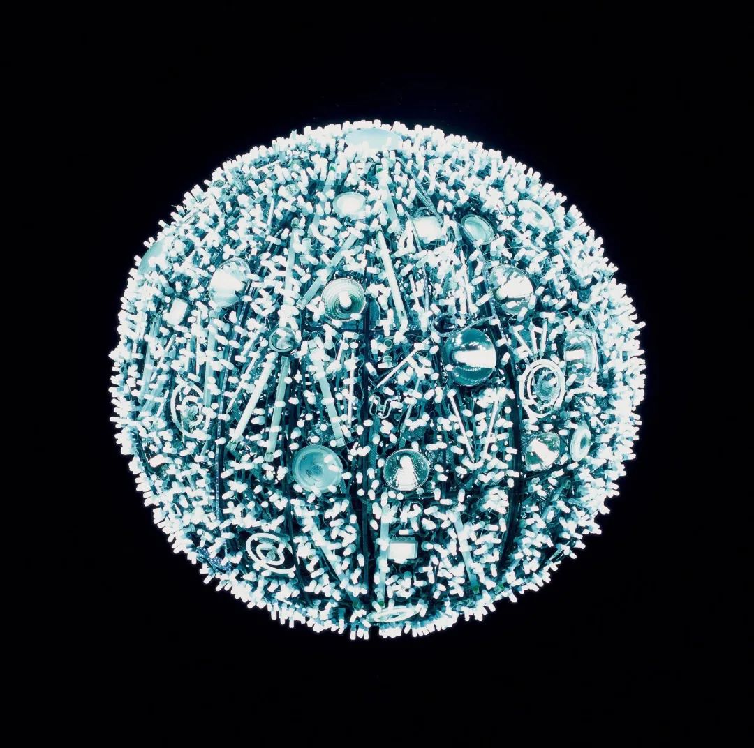 王郁洋《人造月》节能灯泡、金属支架 直径400cm 2007年作