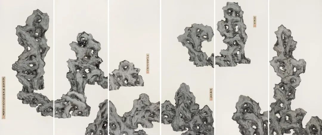 彭薇《艮岳遗峰》绘画装置、设色纸本 190.5×432cm 2012-2014年作