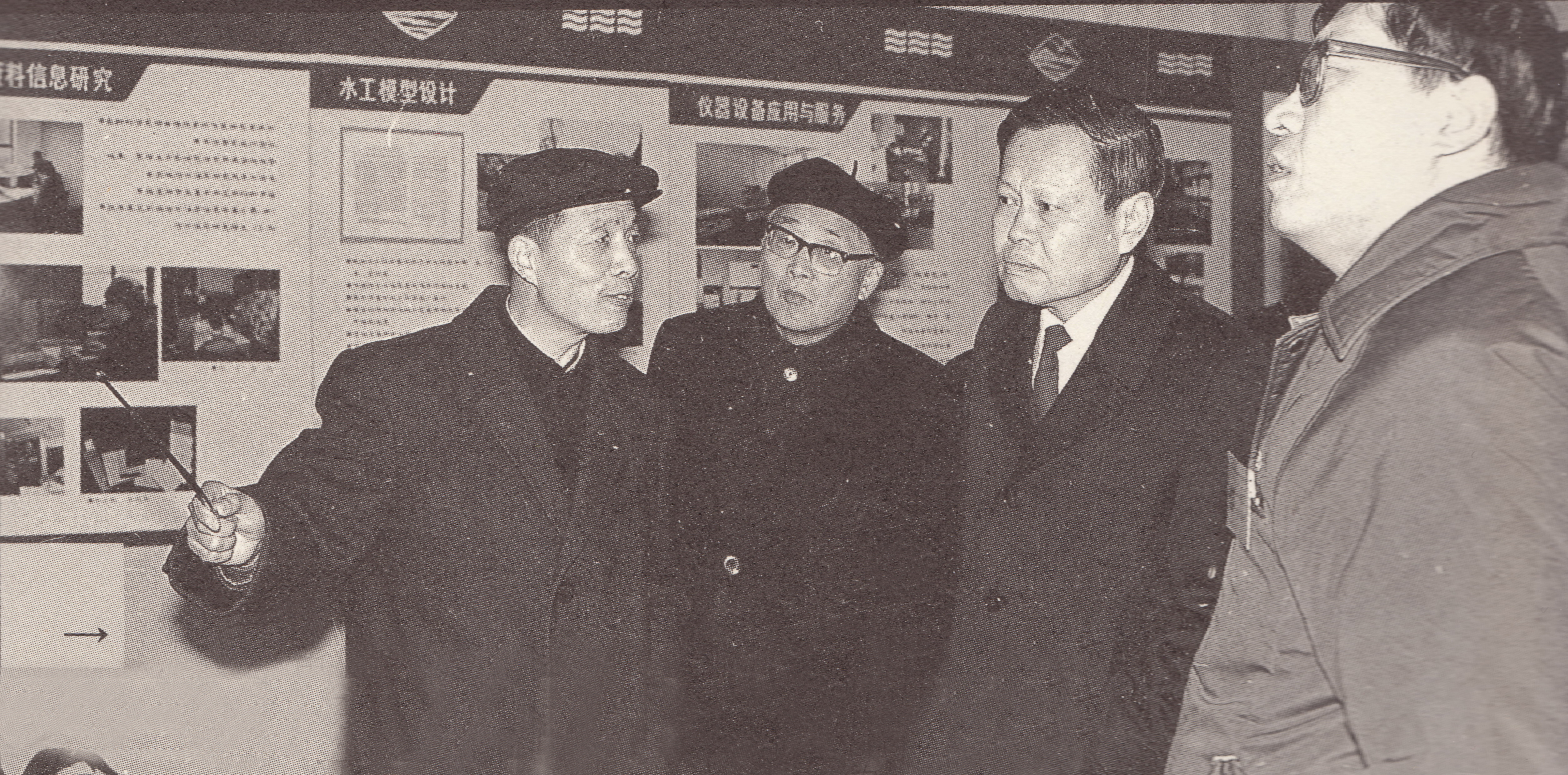 1983年刘佛年陪同杨振宁参观河口海岸研究所。