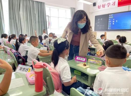 9月6日,小学开学第一天,面对一年级“小神兽”,班主任老师马越跑前跑后,忙碌不停。