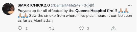 “为所有受皇后区医院大火影响的人祈祷!!我从我住的地方都能看到冒烟,而且我听说曼哈顿都能看到(烟)。”↓