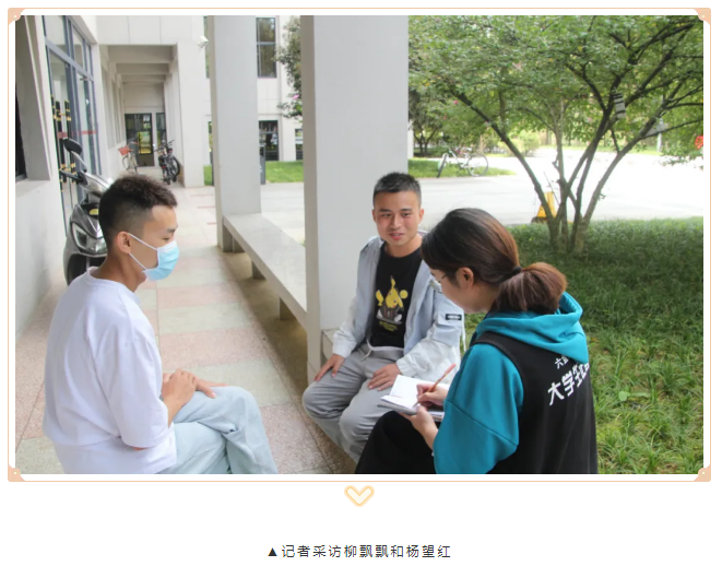柳飘飘来自贵州省黔西南州兴义市望谟县,他就读于教育科学学院2021级小学教育专业,刚踏入大门,校园花香四溢,花枝摇曳美景映入眼帘。还来不及驻足欣赏,柳飘飘就开始忙碌起来。他住在朝阳校区,看到有女同学行李多,便热心帮忙,一同提着行李,前往了龙山校区。第一次来校,他对校园环境还不熟悉,下山时迷了路。正当他东张西望时,遇到穿着黑马甲的大学生记者团的同学,主动为他帮忙。“不是你们,我还不知道该怎么办了。”柳飘飘连声道谢。
