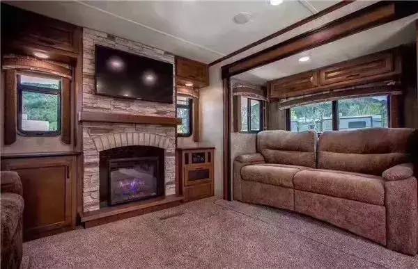 房车内部是纯美式的装修风格,宽敞明亮,配饰也非常有质感,