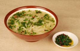 粉汤的全称是“杂烩粉汤”或“鸡肉粉汤”,具体做法是将凉粉切成方形薄片,加杂烩、丸子、鸡肉、酥肉、肉片等。是定西民间婚丧常见待客食品,更是家家户户常吃的一种美食。