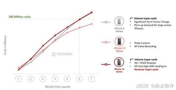数据显示,去年第四季度iPhone 12的销量甚至破了苹果近五年的纪录。而Counterpoint Research的报告数据显示,iPhone12系列上市7个月,销量就突破1亿台大关。这也帮助苹果在去年第四季度击败三星,成为全球智能手机销量第一。