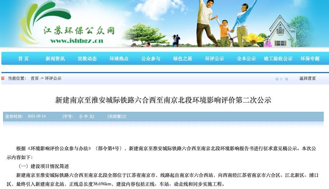 9月14日,江苏环保公众网对新建南京至淮安城际铁路六合西至南京北段环境影响评价进行第二次公示,意味着宁淮城际朝全线开工又进一步。