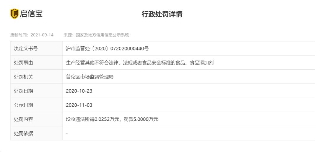 目前该公司分支机构有9家,其中普陀分公司曾因“生产经营其他不符合法律、法规或者食品安全标准的食品、食品添加剂”被罚款5万,处罚详情为“所抽检甜虾的大肠菌群,北极贝的菌落总数、大肠菌群项目不合格”。