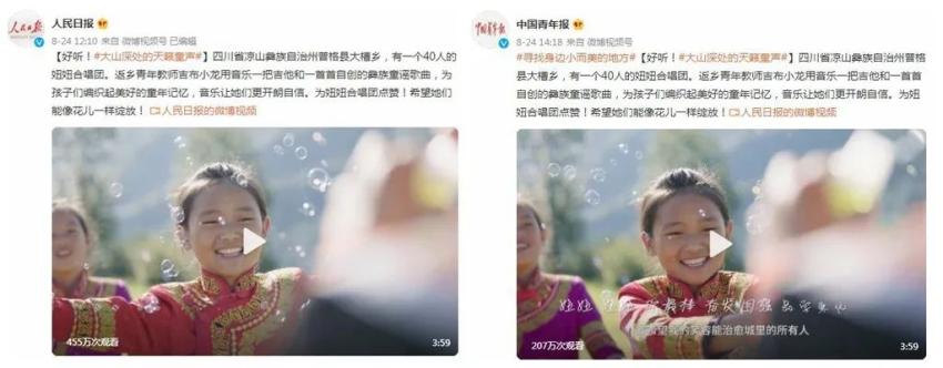普格县上升161位,上升幅度最大。梳理发现,普格县的关注度来自于央媒对该县大槽乡返乡青年教师吉布小龙和一个40人的妞妞合唱团的报道。央媒多个微博纷纷发布和转发短视频《好听!大山深处的天籁童声》,引起了中国媒体、自媒体和网友转发。有网友评论:“为妞妞合唱团点赞!希望她们能像花儿一样绽放!”“最纯真的笑容,最美丽的歌声!”