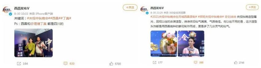 “西昌发布V”8月份评论、转发和点赞数量较7月有数十倍增长。明星效应拉动明显,央视秋晚在西昌录制,“西昌发布V”发布了系列探班央视秋晚的图文、视频,刘诗诗、丁真、周深等明星效应也不可小觑。