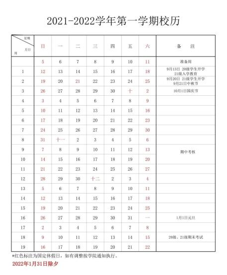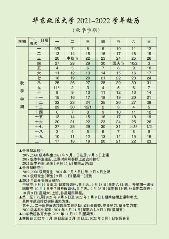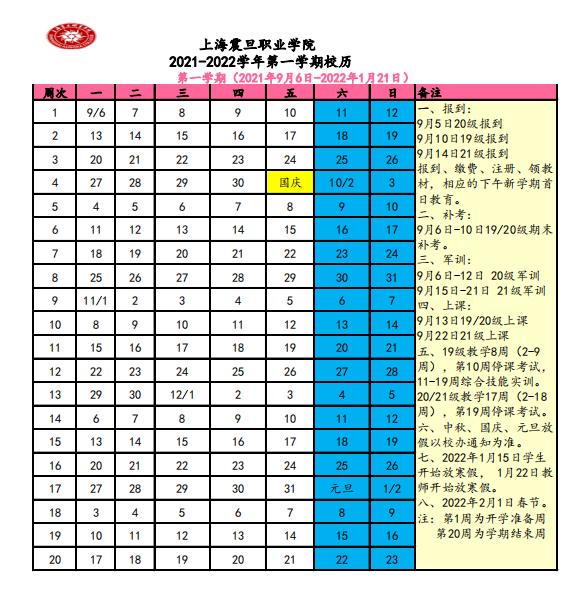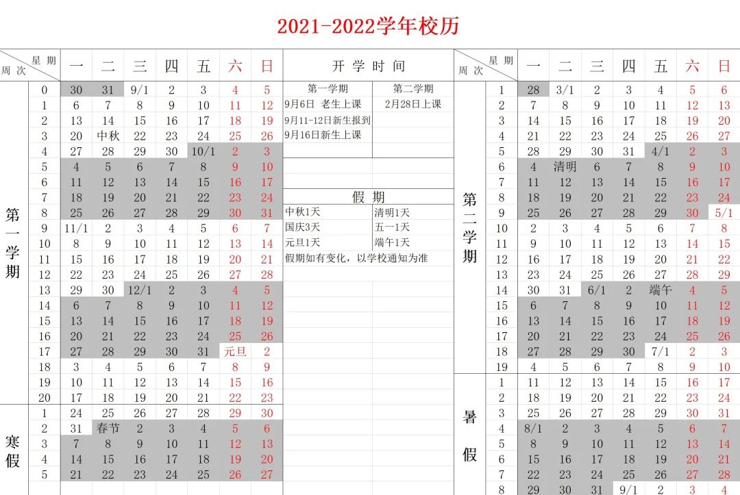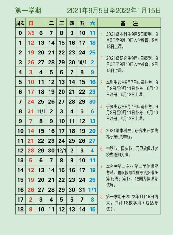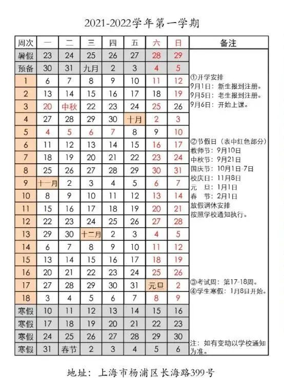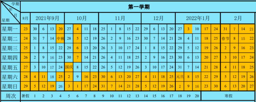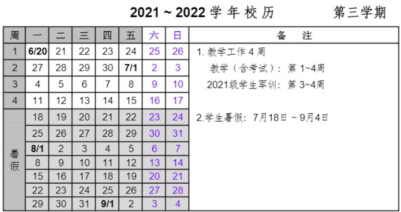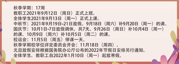 (2021年秋季学期开学日期及军训时间有所调整)