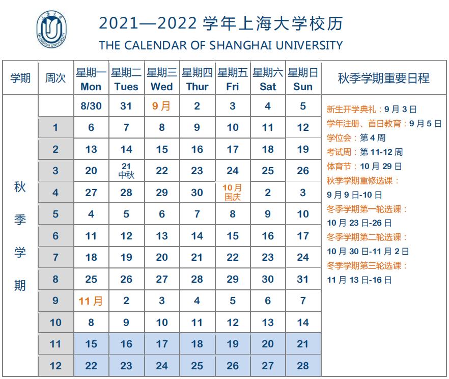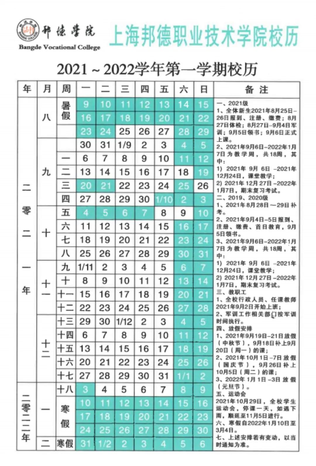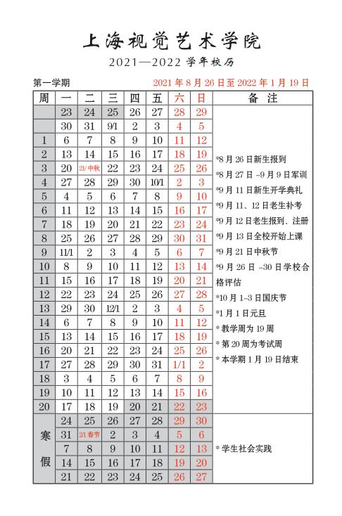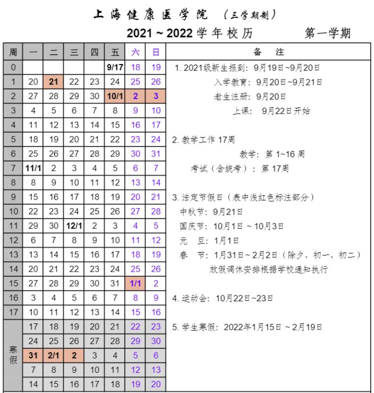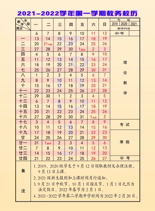 (2021年秋季学期开学日期及军训时间有所调整)