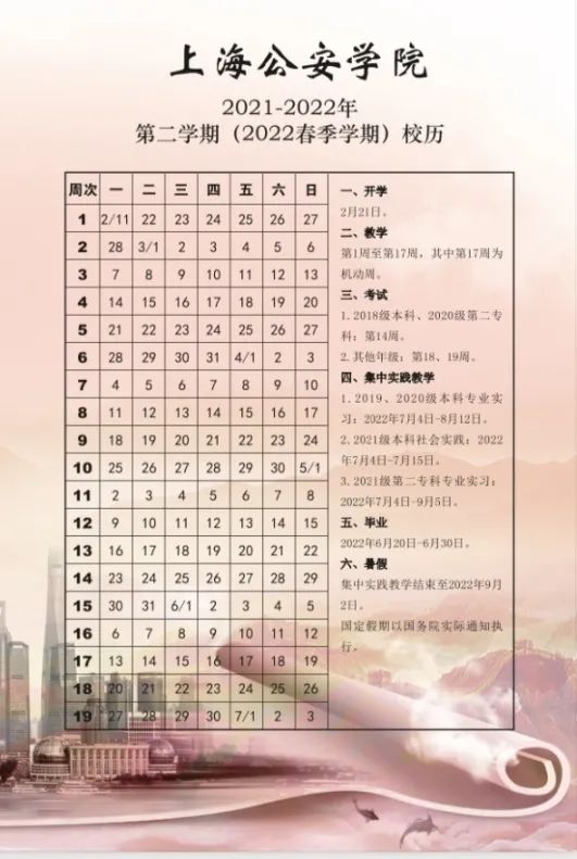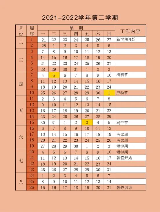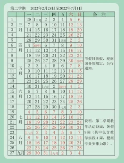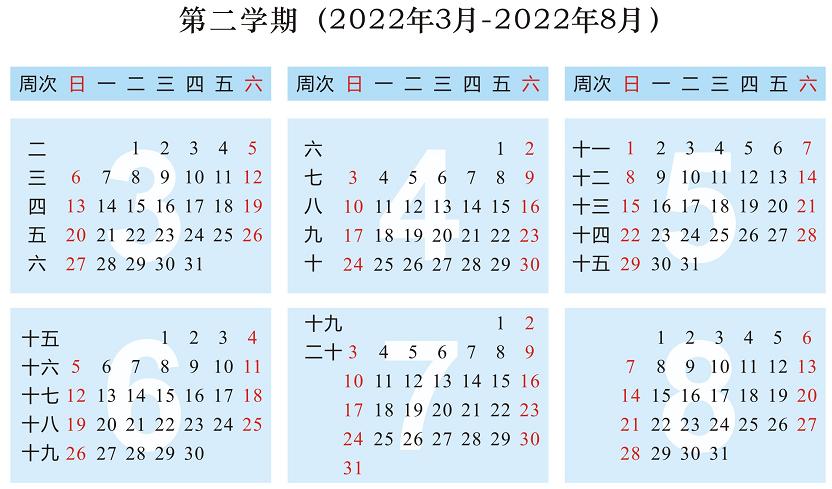 2022年2月17日开学,6月30日结束,全学期共20周。暑假从7月1日开始,8月31日结束。
