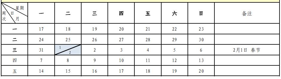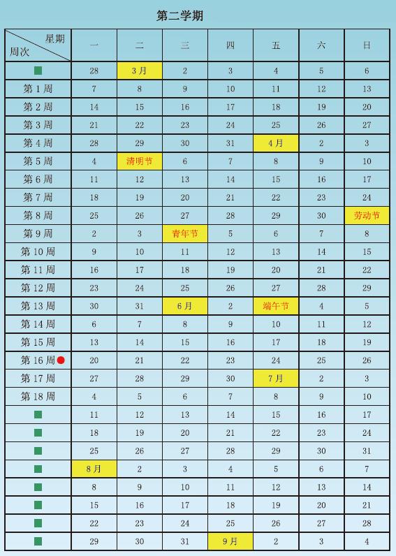 中小学校历第二学期
