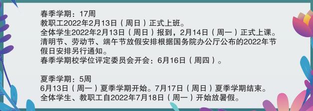 寒假时间:2022年1月22日至2022年2月20日
