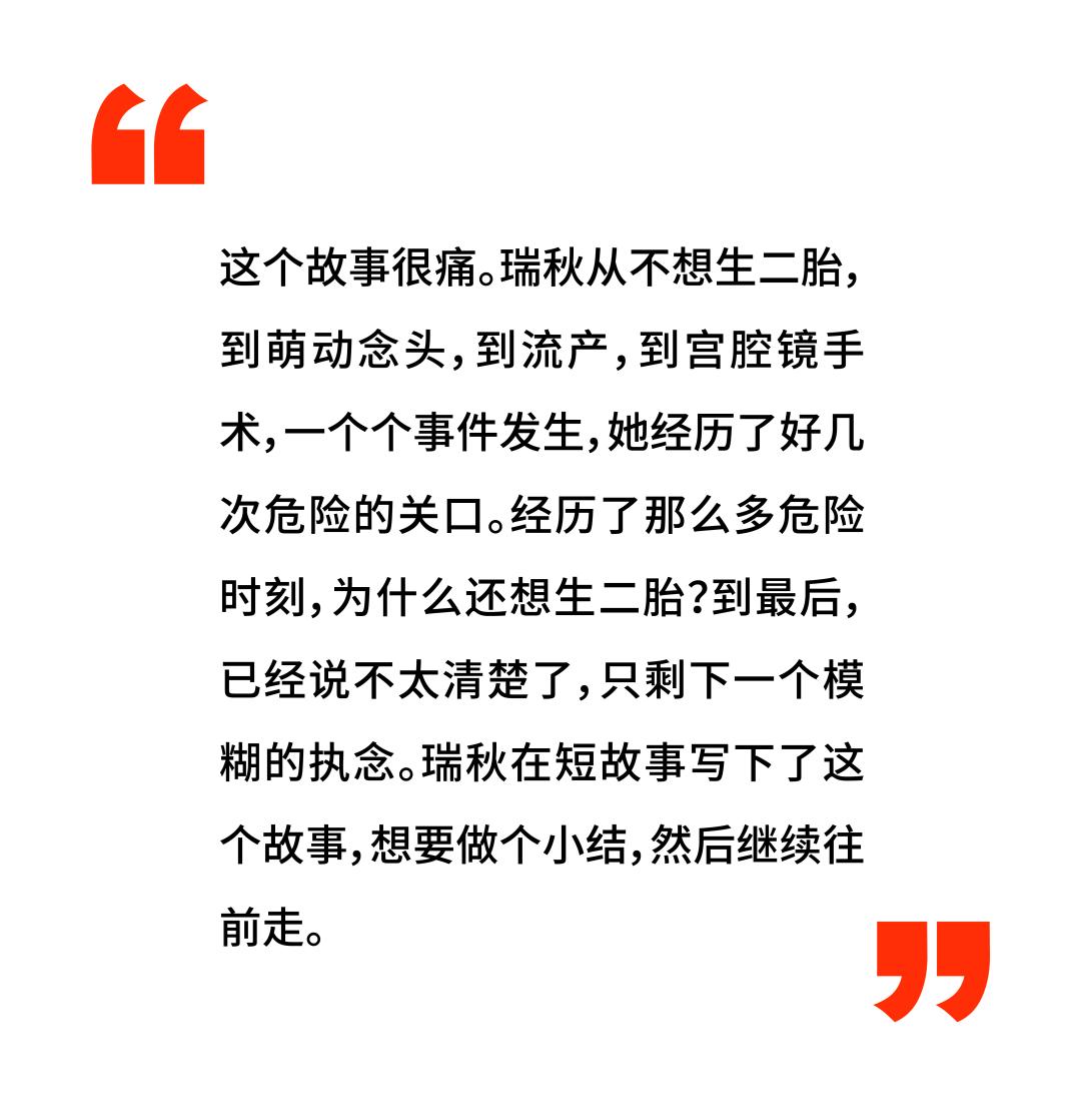 在写作过程中,我被依蔓问得最多的一个问题,就是为什么想要二胎。被她重重的灵魂拷问下我列举了八条原因,最后我退到一个最本能的反应,就是爱孩子,想当母亲,单纯地想再生一个,没有原因。其实那些罗列的好处,都是为了克服恐惧而说服自己罢了。我也去采访先生,认真地听他的感受。我以前就知道人性是复杂的,然而写作这个故事,我才真正梳理清楚我想生二胎的动机是复杂的,也第一次真正地倾听到,原来他不想生二胎的动机也是复杂的。我突然意识到,在生育这条路上,他居然比我有更多惧怕。我开始理解他,而不是跟他较量。