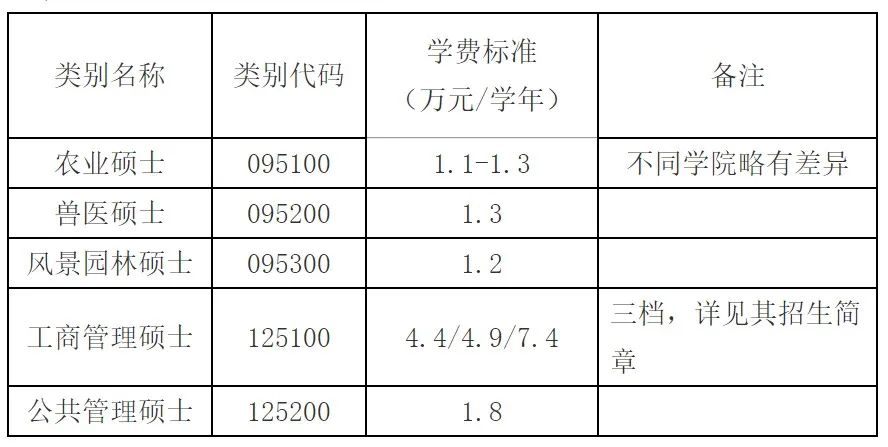 非全日制专业学位研究生,不同类别(领域)学费标准不同,详见下表: