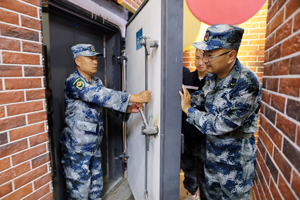 “平战转换组,命令你组立即组织工程平战转换!” 9月17日上午9时,随着演练指挥员的下令,尖锐的哨声响起,在昆明市白云路公共人防工程现场,人防志愿者防空疏散演练正式开始。临空封堵门关闭,战时疏散通道开启,平战转换组、疏散掩蔽引导组、安全警戒组等各支队伍迅速就位。这是昆明市人民防空办公室首次组织开展以志愿者为主的防空疏散演练。