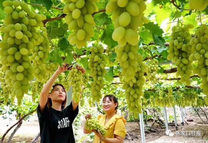 走进怀来县桑园镇后郝窑村 “小李葡萄采摘园”,郁郁葱葱的葡萄藤下一串串圆润饱满的葡萄挂满了枝头。在这里经营了10多年的李文林、王慧敏夫妇正忙着为前来采摘的市民称重、装箱。8月初,随着园内无籽露、乍娜两种葡萄最先成熟上市, 一年中令人期待的丰收季就此拉开帷幕。中秋节临近,“主力军”白马奶、红提、美人指相继成熟后,夫妻俩更是开始了一年中最忙的时候。桑园镇的葡萄以卖相优、品质佳、口感好著称,深受本地乃至京、 津等地的消费者欢迎。因此每到这个时节,很多熟客便会驾车前来,在碧云层叠的种植园里体验采摘各色葡萄的乐趣, 而且不止自己品尝,还带回去作为礼品馈赠给亲朋好友。眼下,李文林每天都能销售上千斤。