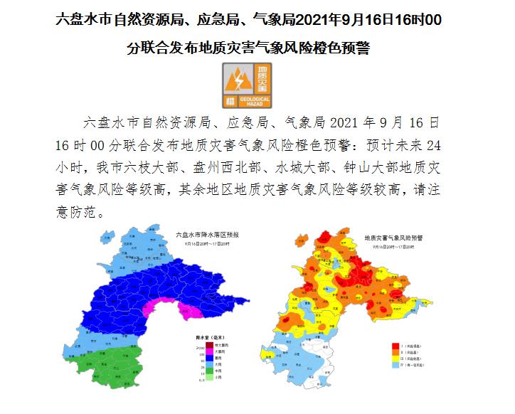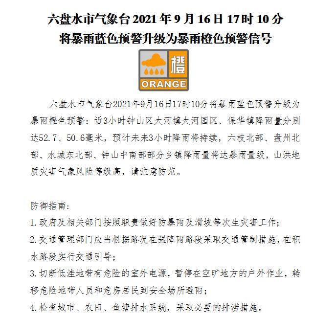 六盘水市气象台9月16日发布暴雨橙色预警↓↓↓
