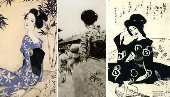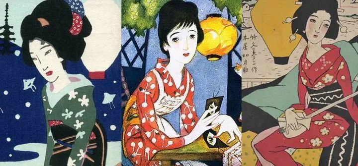 但他最引人瞩目,还是他笔下的美人。和常见的浮世绘女性形象不同,梦二画中的女性在情感上似乎更为细腻内敛,她们有一个专属的名词唤做「梦二式美人」。