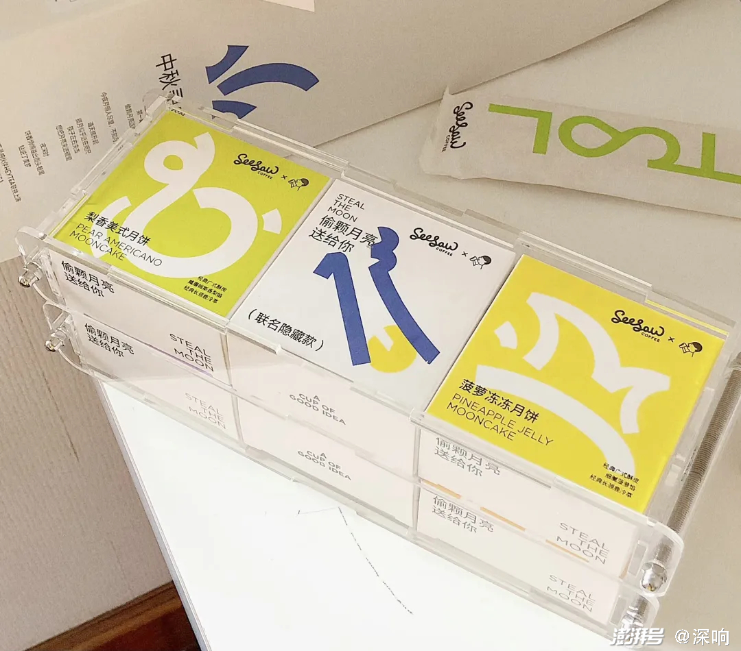 今年,众多口味清奇的月饼遍布了市场,喜茶携手咖啡品牌Seesaw还推出了“偷颗月亮送给你”礼盒,包含喜茶芝士、绿妍茶与咖啡等“奶茶”口味;盒马工坊推出了藤椒牛肉味月饼,创意来自四川风味冷锅串串,材料包括了牛百叶、豆皮等传统川菜食材。