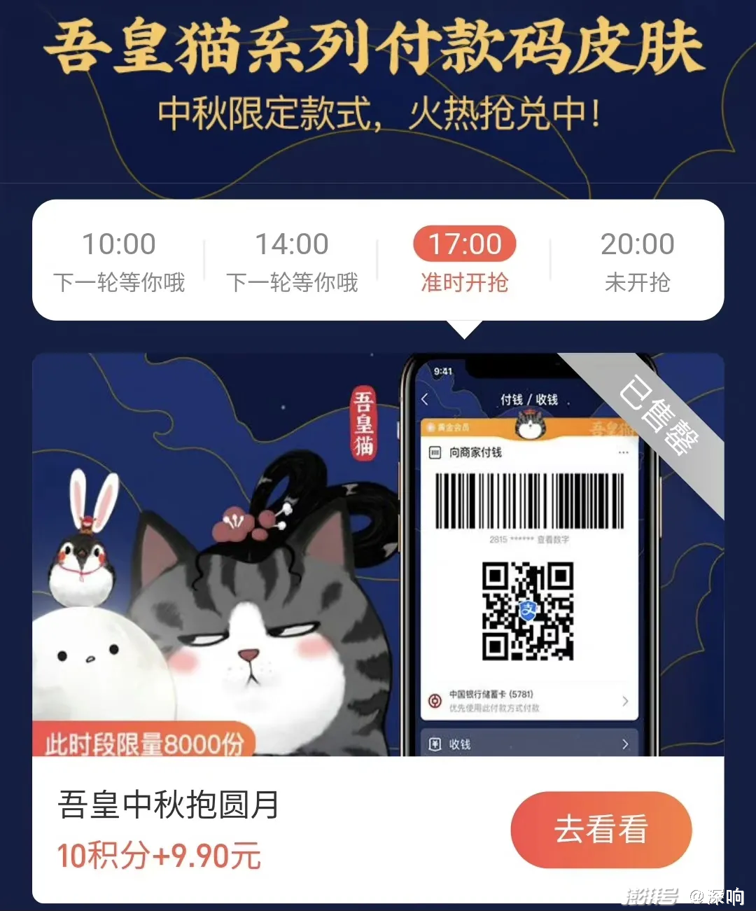 比如为迎接中秋的到来,支付宝推出了吾皇万睡贺中秋系列NFT作品。NFT正是当下最火热的概念之一,而支付宝中秋系列NFT皮肤只需要用户消耗10支付宝积分并向NFT发行方支付9.9元即可买下。