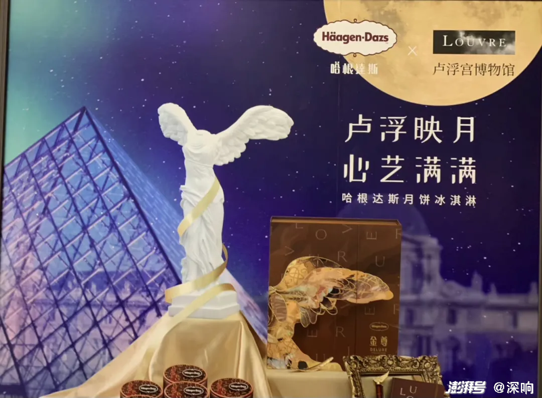 在今年的此类跨界合作中,文化机构是引人注目的主角。例如上海博物馆和大都会艺术博物馆就携手品牌来伊份进行联名合作,推出了以博物馆藏品为灵感的月饼礼盒。卢浮宫博物馆与哈根达斯中国(公司)合作,推出了以维纳斯、蒙娜丽莎等艺术女神为主题的冰淇淋月饼。