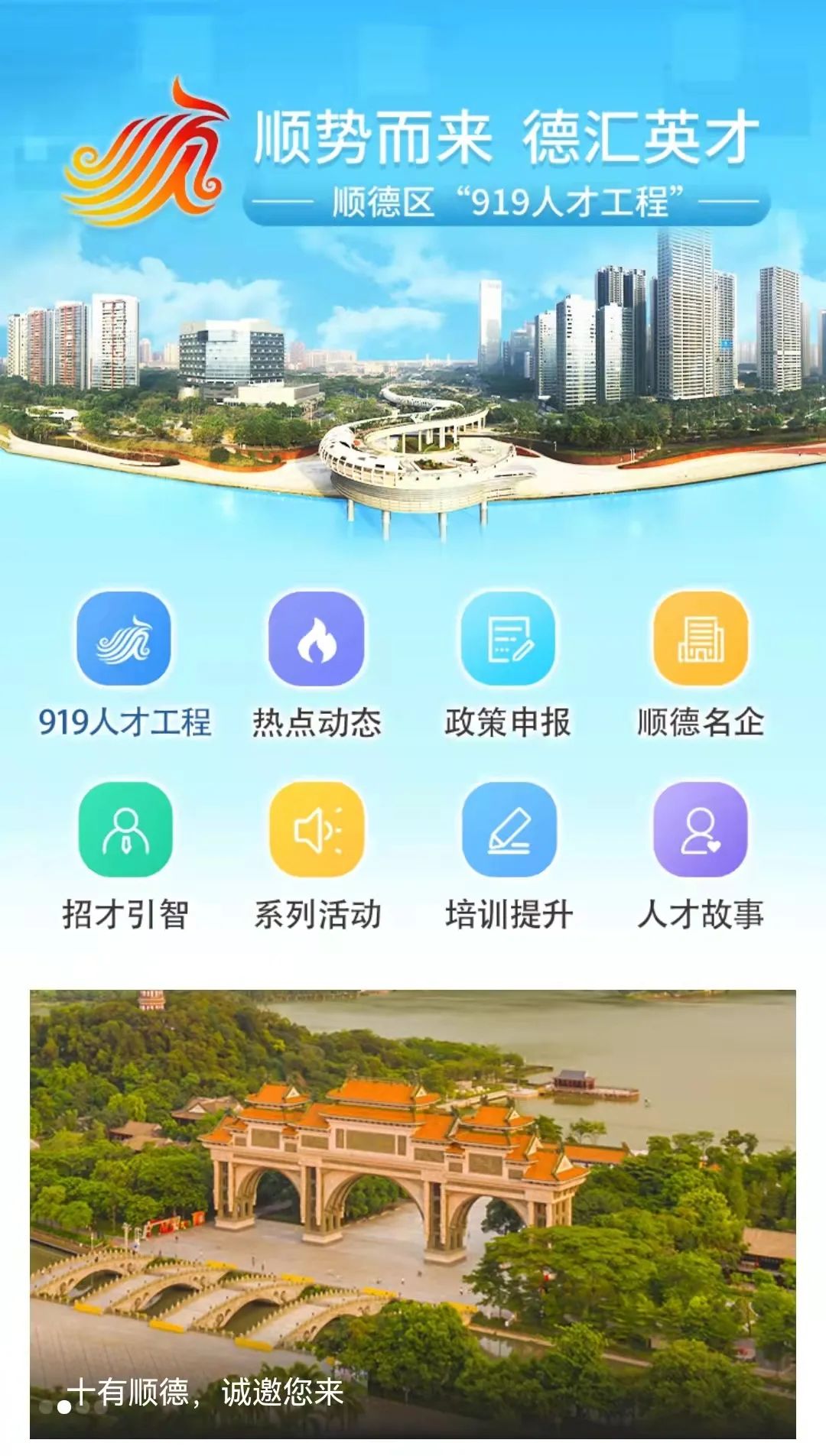 顺德“919人才工程”手机网上线啦!在“顺德发布”微信公众号菜单栏“读懂顺德”→“919人才工程”可以查看“919人才工程手机网”。