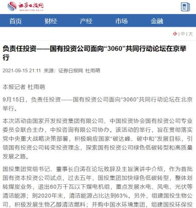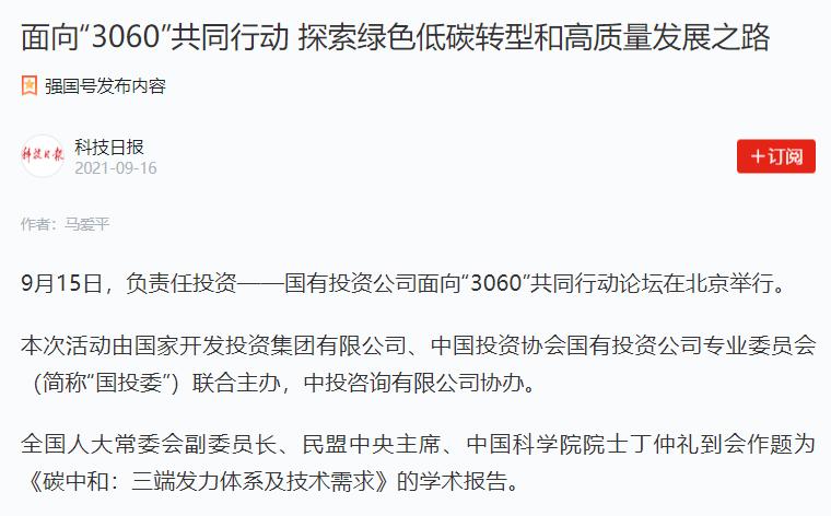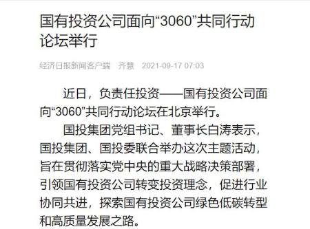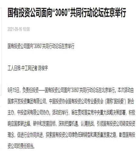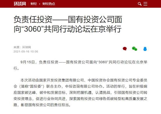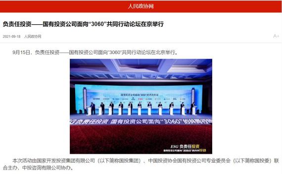 负责任投资——国有投资公司面向“3060”共同行动在京举办(点击上方文字,进入报道)