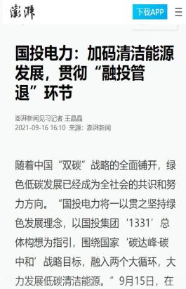 国投电力董事会秘书、总法律顾问杨林表示,整体而言,作为一家产业投资公司,在过去的成长中,国投电力主动坚持了清洁发展,并将这一战略贯彻到“融投管退”各个环节。按照规划,2030年之前,国投电力将如期实现碳达峰。��扫描二维码查看报道