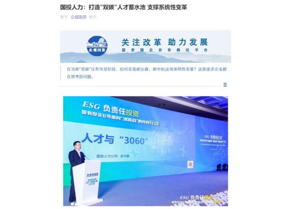 国投总经理助理、国投人力董事长兼总经理孟书豪表示,为加快实现“双碳”目标,国投人力制定了服务碳达峰、碳中和的“3060”目标的三项工作:一是“3060”人才引进及配套服务。二是“3060”科技创新服务。三是“3060”产业研究和人才政策智力支持。孟书豪表示,国投人力始终致力于服务人才强国战略和创新驱动发展,积极拓展引才渠道,持续完善引智机制,通过人工智能、大数据分析有效提升运营效率和效能,为实现碳达峰、碳中和“3060”目标提供智力支持和人才支撑。��扫描二维码查看报道