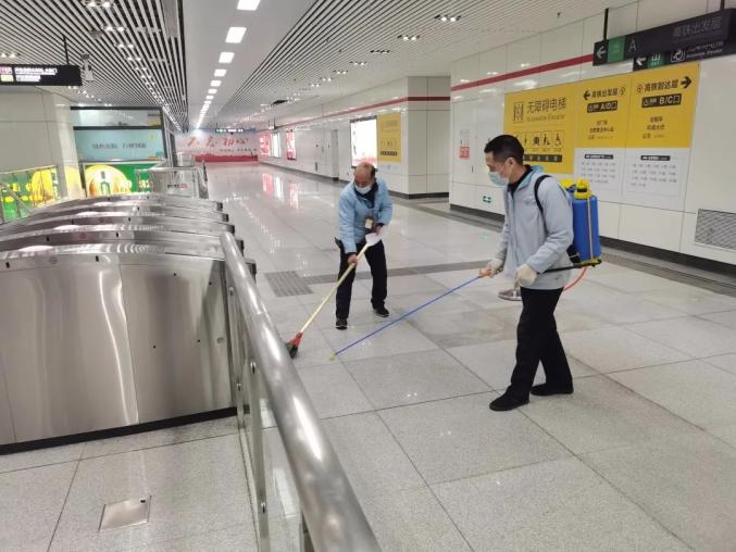 消毒消杀,严防病毒传播的每个隐患。强化防疫措施,加密消毒频次。对于进出站闸机、通风口、安检机、自动售票机、自动充值机等常接触设备、重点区域进行全面消杀;