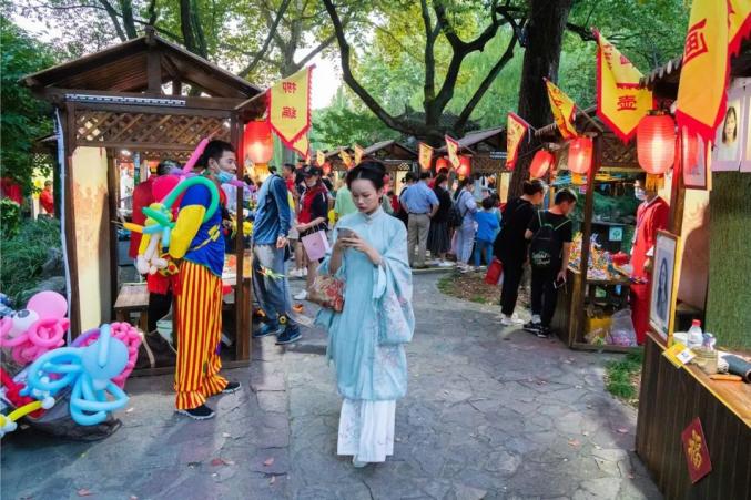 以游戏互动和实景演绎为主要内容的游园会,是此次中秋假期活动的重头戏,分为古风快闪舞、诗词快闪、中秋修禊、祈福游园等板块。9月21日当天下午13:30—16:00,市民游客可以与传统中秋习俗“面对面”,感受阖家团圆的温馨氛围。